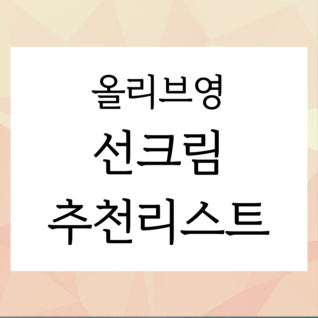 선크림은 자외선을 차단하기 위해 꼭 필요한 필수품인데요. 선크림을 제대로 발라주지 않으면 자외선이 노출되며 기미, 주름 등 피부건강을 해칠 수 있습니다. 그래서 오늘을 올리브영에서 살 수 있는 선크림추천을 해보려고 합니다.