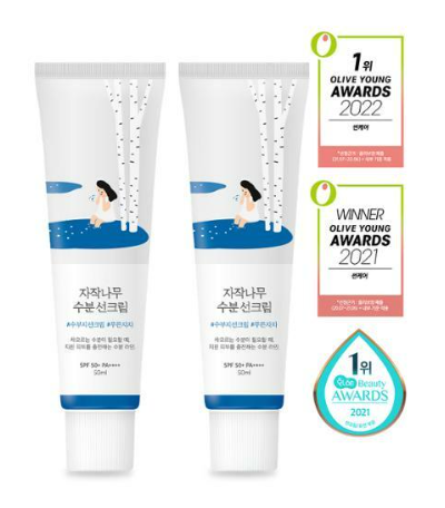 올리브영에서 살 수 있는 선크림추천 첫번째는 라운드랩의 자작나무 수분선크림입니다. 라운드랩의 수분의 선크림은 수분진정에 좋은 선크림으로 일상생활에 편하게 쓸 수 있는 선크림인데요. 이름이 수분선크림으로 높은 촉촉함을 자랑하는 선크림입니다.